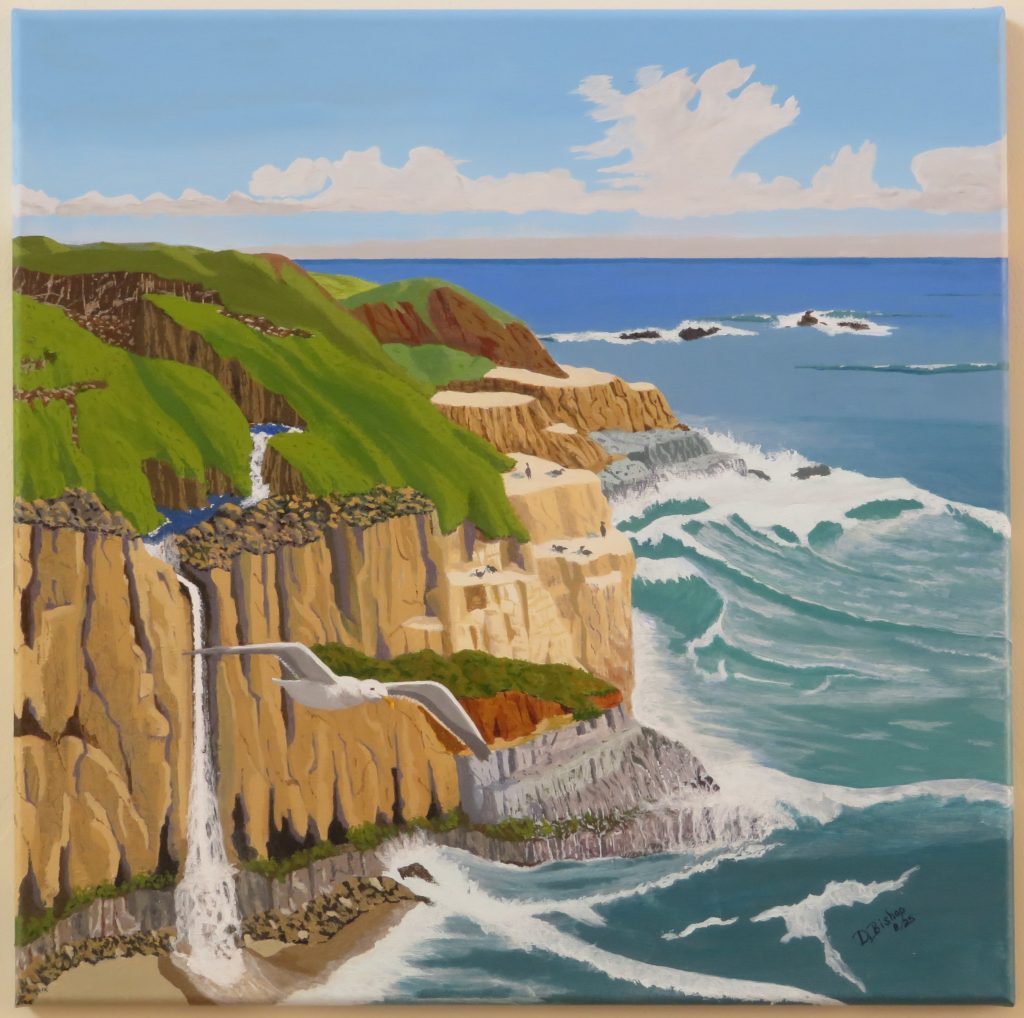 Acrylic on stretched canvas. Inspired by the California coastline and Big Sur. Size: 20x20x1.5. No frame. $595.