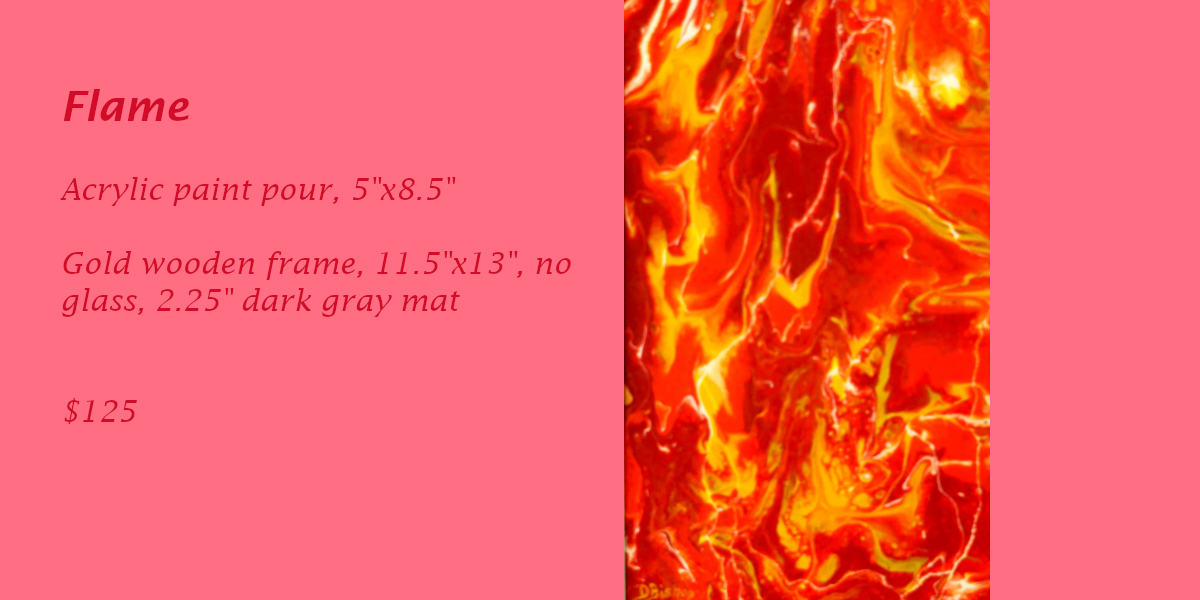 Abstracts Fire and IceAnticipationCalderaDragon’s LairSubstantiationFlameInfusionKnotty TiesChaosMountain KaleidoscopeFukushima TsunamiPaint Pours #1, #5, #6Paint Pours #3, #4, #7Surf Froth <,> or swipe to scroll… To order, contact dan.b@miritishstudio.com
